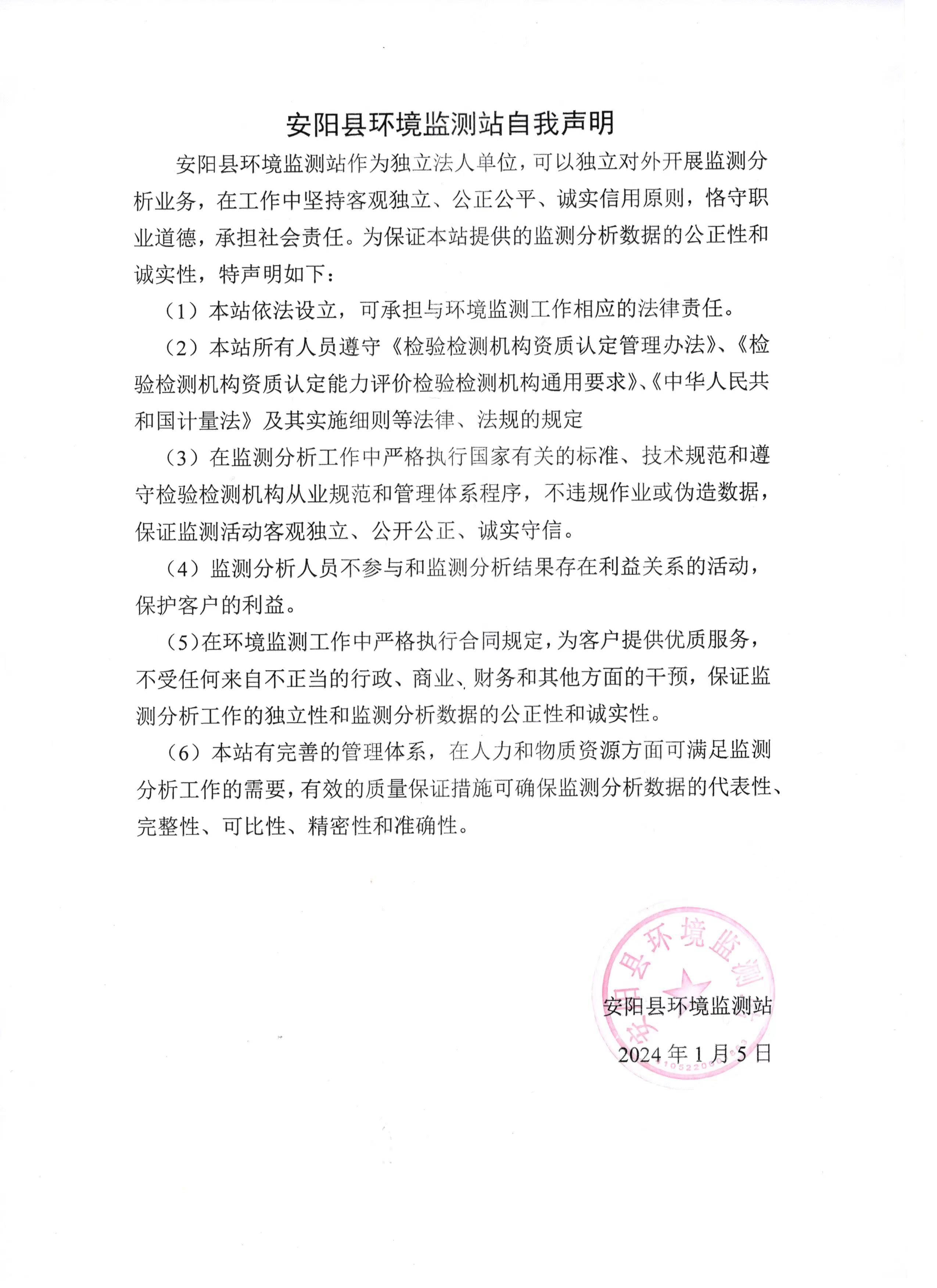 安阳县监测站自我声明